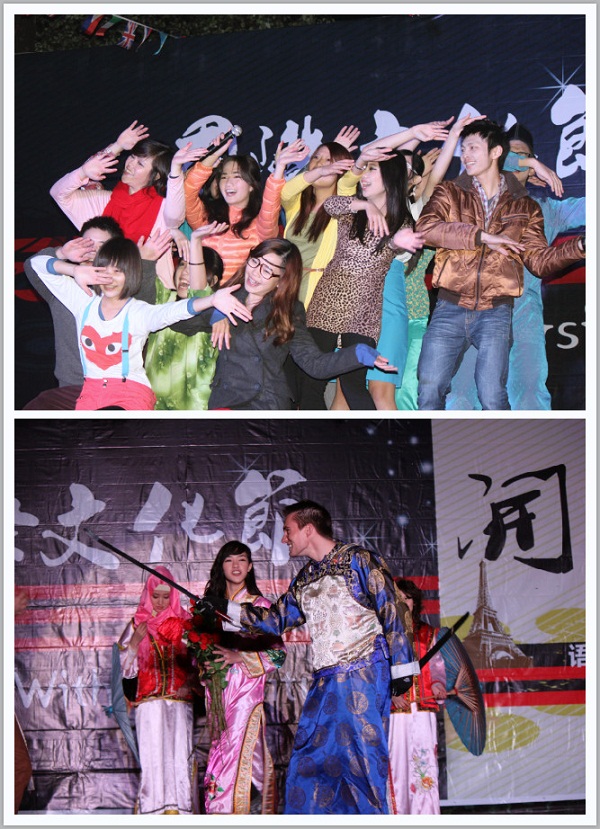 启动仪式结束后,来自各国的留学生为大家呈现了精彩丰富的民族风情节目:来自韩国的舞蹈串烧引爆全场热烈气氛,马来西亚的歌剧《用马来西亚的情歌来说爱你》甜蜜欢快,泰国的民族舞蹈《泰国水灯节》异域气息浓厚,而中国越剧《西厢记·夜听琴》则向大家展示了中国传统戏剧文化。来自韩国、巴拉圭和乌克兰的留学生们演唱的歌曲表现出了他们对于中国文化的热情,精武协会的双截棍表演、巴基斯坦的小品也都给观众留下了深刻的印象。晚会的尾声,留学生展现了精彩的风情时装秀和引爆全场的《江南style》舞蹈表演,台上气氛热烈,台下欢呼掌声不断,将国际文化节开幕式晚会推向了高潮。