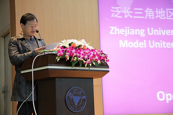 浙江大学模拟联合国协会刘真正秘书长上台发言