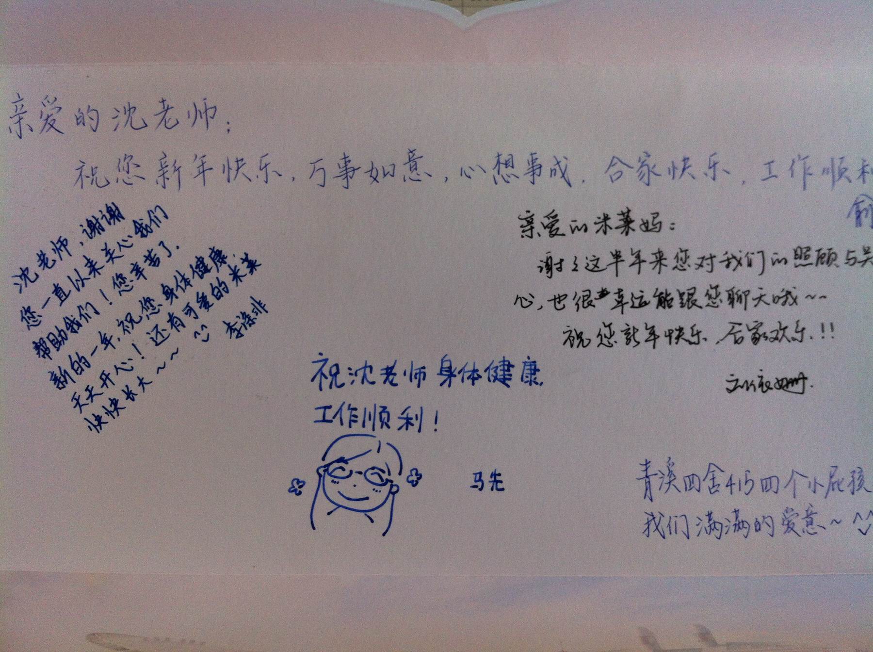 “新生之友”工作体现了学校对学生的人文关怀,为增进师生交流搭建了较好的平台,但是部分学生对于“新生之友”工作的积极意义认识不足,在与“新生之友”交往的过程中往往处于被动。为积极推进“新生之友”工作深入、和谐、有效的发展,外语学院学工办积极思考,针对目前学生相对被动的薄弱环节,特推出“贺卡谢师恩、互动促发展”活动,给12级学生寝室发放新年贺卡,倡议、鼓励学生主动联系“新生之友”一次,汇报入学半年来的学习生活。同时,参与“新生之友”工作的老师们日常的教学、科研、管理等工作任务已然十分繁重,现在,各位老师又自愿参与到这项没有报酬、不计工作量的工作中,体现了老师们崇高的职业品德和对学生的大爱。希望同学们通过贺卡感念师恩,化被动为主动,使“新生之友”工作营造一个良性的互动。