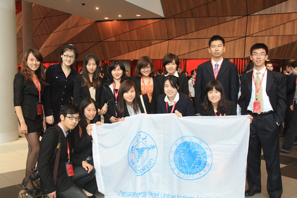 我校的模拟联合国协会自2007年成立以来,已经走过了5年。5年间,协会不断发展壮大,不仅在外派参会中取得了极好的成绩,也成功举办了五届泛长三角地区模拟联合国大会(PYDMUN),向着学术严谨化、影响力国际化的方向进步发展着。在本次世界模联大会上,我校代表也向各国代表发出最诚挚的邀请,希望他们在金秋时节能够来到美丽的杭州,参加第六届浙江大学泛长三角地区模拟联合国大会。