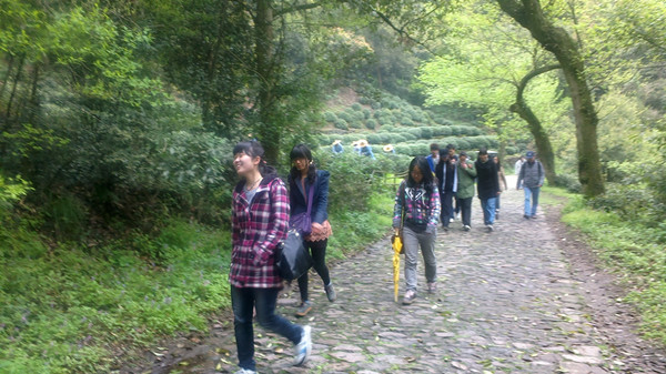 游览完美丽的九溪后,英语1201班一行人便经由山道前往龙井村,前往被称为“茶乡第一村”的龙井村。龙井是中外驰名的龙井茶原产地。它地处西湖风景名胜区西部腹地,东起龙井寺,西至老龙井御茶园,南抵十八涧北端,整个村落呈"Y"字形分布。此时正是清明时节,便道两侧尽是辛苦繁忙的茶农,他们带着竹帽,穿着蓑衣,辛勤地采摘劳作。我们一行人在感叹龙井乡村的清爽美丽,享受徒步带来的新鲜与劳累的同时,更惊讶这里茶农舒适小康的生活。大家开始思考形成这种局面的原因——和我国其他欠发达地区的农村相比,龙井呈现了截然不同的欣欣向荣的景象。茶农们收入普遍走高,住宿条件优越,让人羡慕这一派田园风格。
