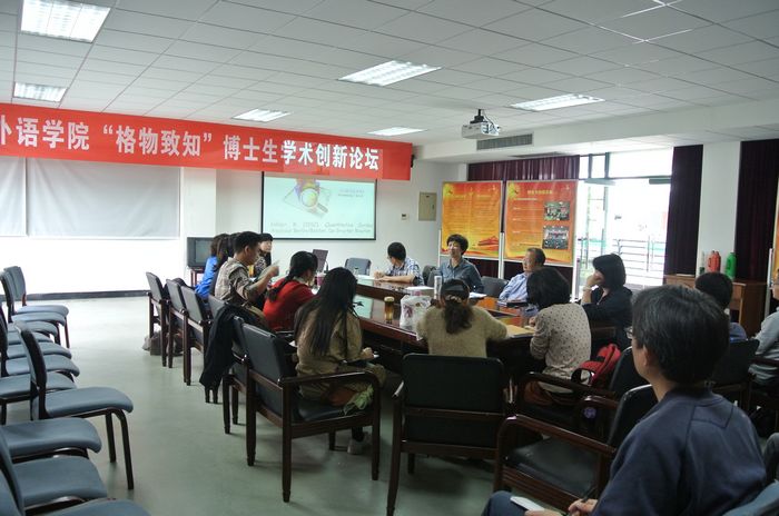 2013年5月9日下午两点,外语学院“格物致知”博士生学术创新论坛首期交流研讨会在东五201成功举办。来自外语学院各年级的博士生和部分硕士生积极参与了首期论坛的交流讨论。本期论坛由外语学院研究生会主席、12级博士生赵丹彤主持。
