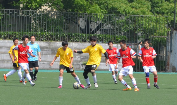 2013年5月11日上午9点,三好杯足球赛小组赛的最后一轮比赛在玉泉校区港校区的新桥门足球场展开激烈对决,外院足球队身着黄黑队服对阵身着阿森纳球衣的控制系队。这场比赛关系到小组的出线情况,因此双方都格外重视。