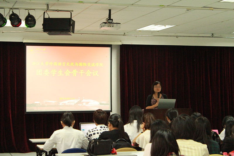 20131011日下午3点半,外语学院于东五-201召开团委学生会骨干会议。外语学院党委副书记沈燎老师、外语学院团委书记沈晓华老师参加了本次会议。到场的还包括外语学院团委、学生会的学生干部们。十六届学生会主席任碧芸担任本次会议的主持人。