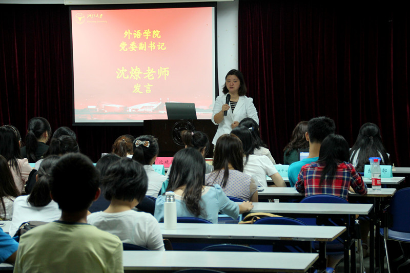 最后,外语学院党委副书记沈燎老师讲话。沈老师进一步强调了学生工作的重要意义,对同学们提出了更高的期许:浙江大学要培养能担当大任为国分忧的具有国际视野的未来领导者。这就需要各位干部在团委学生会这个舞台上不断锤炼和打造自己,将来才能够为成为真正的国之栋梁。沈老师要求同学们要积极主动地参与学生工作,并能处理好工作与学习、生活之间的关系。