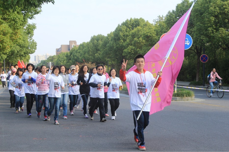 本次长跑活动,外语学院学子态度积极,参与比例非常高。外院党委书记兼副院长褚超孚老师、党委副书记沈燎老师、团委书记沈晓华老师及研究生教育科傅利琴老师也参与其中,与大家共享晨跑的乐趣。在众多队伍之中,外院的队伍分外突出。紫色院旗之后是白色院衫的海洋,在紫金港之中形成一片清新的氛围。尽管外院女生众多,但是在长跑过程中表现出的热情和实力却不输于任何一支队伍。在清晨的阳光中,大家挥洒汗水,在欢声笑语中感受参与运动的乐趣。虽然本次阳光长跑的距离不算很长,但却是鼓励大家积极运动的重要媒介。希望大家在今后的日子里,能够将今天的热情和毅力延续下去,为提高身体素质继续努力。