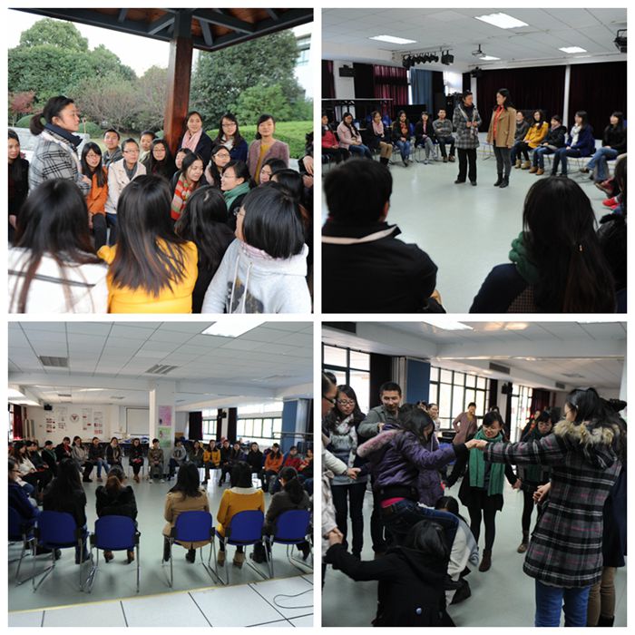 外语学院13级研究生新生团体心理辅导于11月29日下午14点30分在东五201(中)如期举行。外语学院党委副书记沈燎老师、研究生科傅利琴老师参加了本次活动。在沈燎老师的主持下,外语学院的师生们共同完成了此次别致而有意义的心理辅导。同学们在游戏中反思,在活动中熟识,在欢乐中重拾自我,在互动中开启心智。