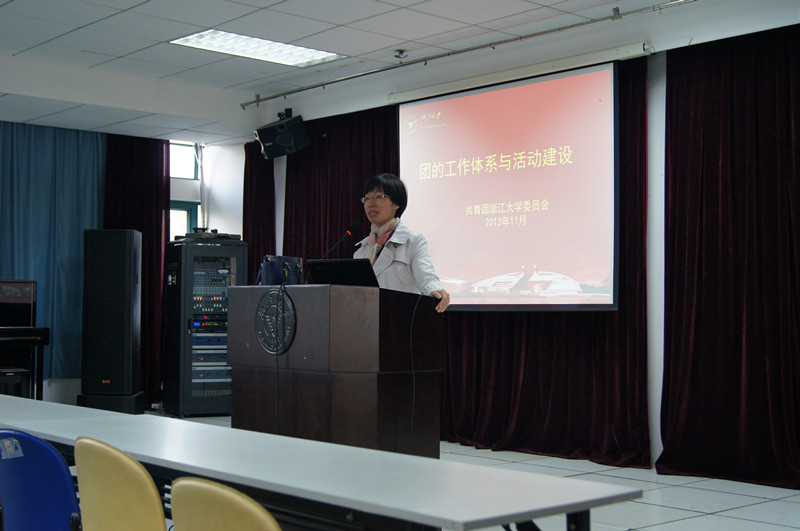 20131117日,由王万成老师首讲“团的组织建设与团干部能力培养”一课。王老师结合党、团组织发展的曲折性,对大家提出了三点期望:一是不要在意自己的位置,认真做事,妥善处理人际关系;二是目光要长远,不要在乎一时;三是要加强自身的修养,明确团支书的工作流程。徐洁老师的主题是“团的工作体系与活动建设”。她从时代对青年的要求入手,对大家进行思想启发。她还向大家介绍了共青团的工作体系,并说明了团支书的重要作用,详细阐述了共青团的基层支部建设以及支部活动组织展开的框架等,更为大家放映活动视频来具体说明。第三堂课“团的思想引领工作和团员意识教育”由沈晓华老师从五个方面进行阐述。她向大家介绍了当前团员青年的思想意识现状及团的思想引领面临的挑战,说明了团的思想引领工作包含体现时代特征、结合青年特点、注意分类指导的原则。最后,沈老师还向团支书介绍了具体的工作方法,以帮助大家在今后的工作中尽快适应。