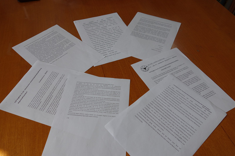 经过德国学研究所众多德语专业教师的激烈讨论和认真评判,最终确定了获奖名单:一等奖(2名),二等奖(5名),三等奖(9名),优胜奖(4名)。本次作文比赛的语体为德语议论文,参赛选手围绕“高考是否应取消英语”这一当前热点话题展开了正反两方面的激烈探讨和逻辑论证,参赛选手在各自的习作中展现出慎密严谨的思辨能力和娴熟自如的书面表达技巧,主办方和承办方为每位获奖的参赛选手特地准备了奖状和相应的奖品以资鼓励,这是对获奖选手勤奋有效的专业学习和娴熟自如的写作技巧的认可。
