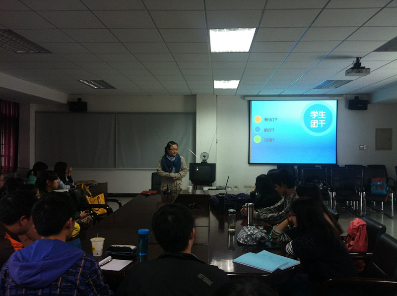3月28日下午,浙江大学外语学院团委在东五201举行了内部培训会议。此次培训由团委书记助理刘悦主持,主讲人为汤琪,她本科就读于外院德语系并曾担任外院团委挂职副书记、校团委副助理,现为公共管理学院研究生。在本次培训会上,汤琪学姐以“学生团干”为主题,结合自己的亲身经历以及身边事例对该主题展开了“是什么”、“为什么”、“怎么做”的探讨。