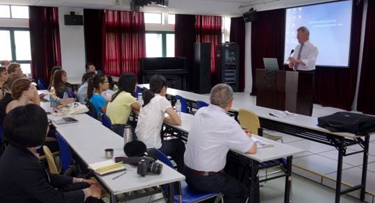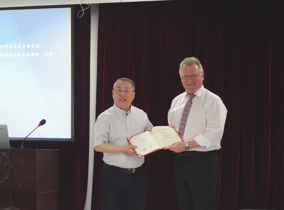 首先,范捷平教授致辞热烈欢迎桑德施奈德教授的到来,并为其颁发了浙江大学客座教授证书。随后桑德施奈德教授从全球国际政治现状出发,提出我们目前所处的时代是多变的,极具挑战的。正逢俄罗斯总统普金访华时期,他认为普金对于乌克兰局势的做法并没有完全“遵循”国际游戏规则。他认为经济在全球局势扮演了非常重要的角色,甚至可以影响政治权力和军事权力。对于世界上一些国家,也许国内自身的问题和经济问题已经非常严峻,对于乌克兰局势的现状,需要理清各国所处的位置。