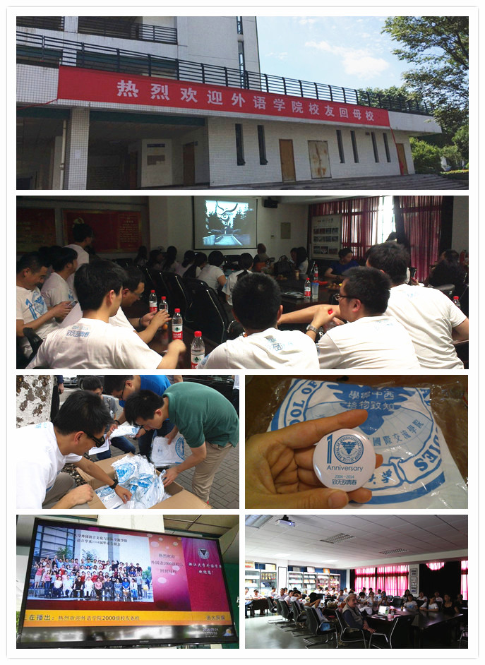 5月24,外语学院2000级部分校友毕业十周年同学会在浙江大学紫金港校区举行。来自经贸英语专业、日语专业及英本专业部分校友共计35人回到母校,与当年的老师胡松法、姚暨荣、程晓玲、朱更生、Chuck、高晓洁欢聚一堂,共同追忆青涩的四年大学生活,分享十年历练的成长与感悟。