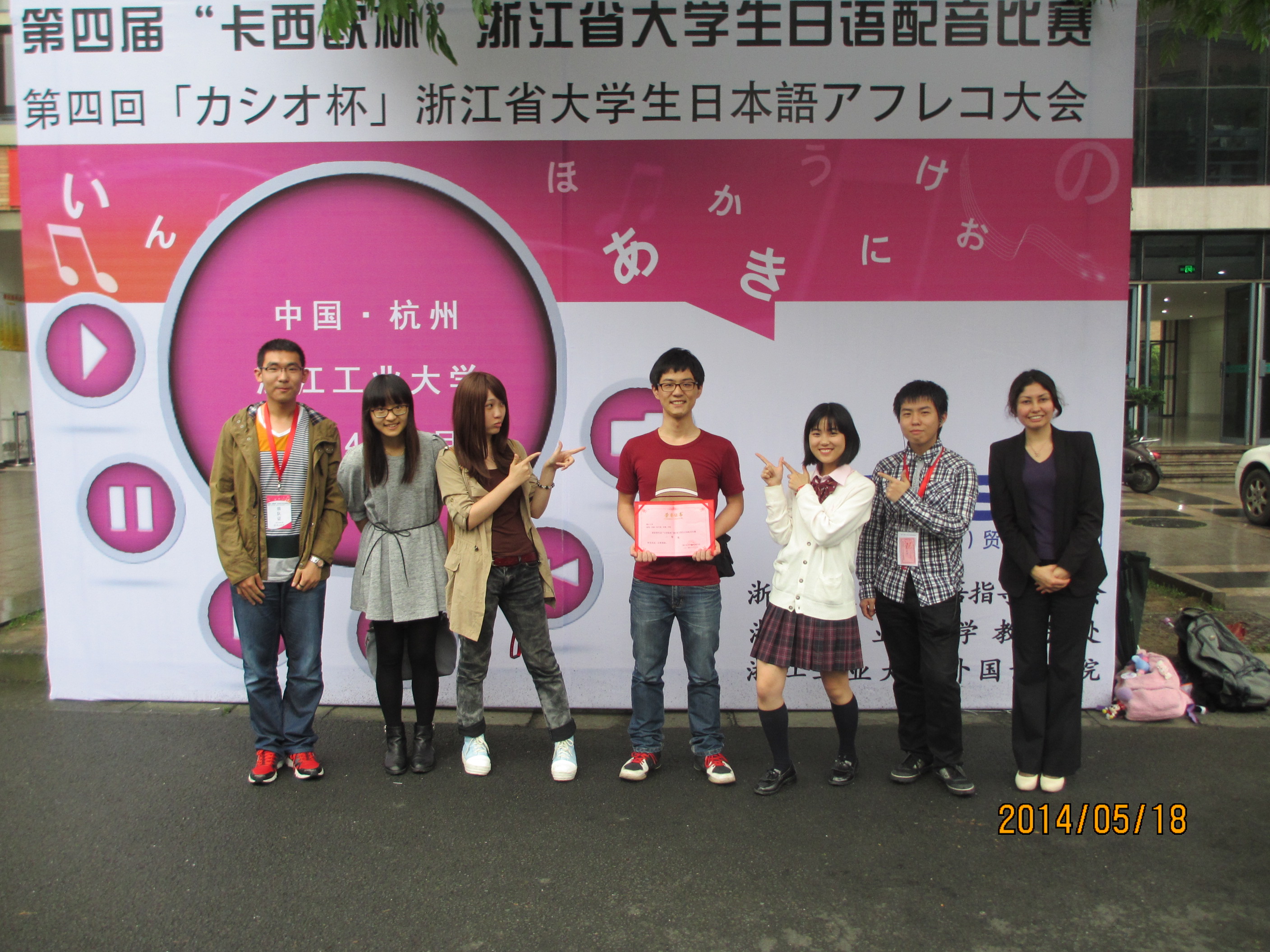我校赵利、冯喆、沈天宸、汪娅、叶明五位同学在校内预赛中表现优异,组成“STAR RISE”代表队,由尹博文同学领队,赴浙江工业大学参加决赛。外语学院日本语言文化研究所主持工作的副所长阿莉塔老师、日籍教师楠