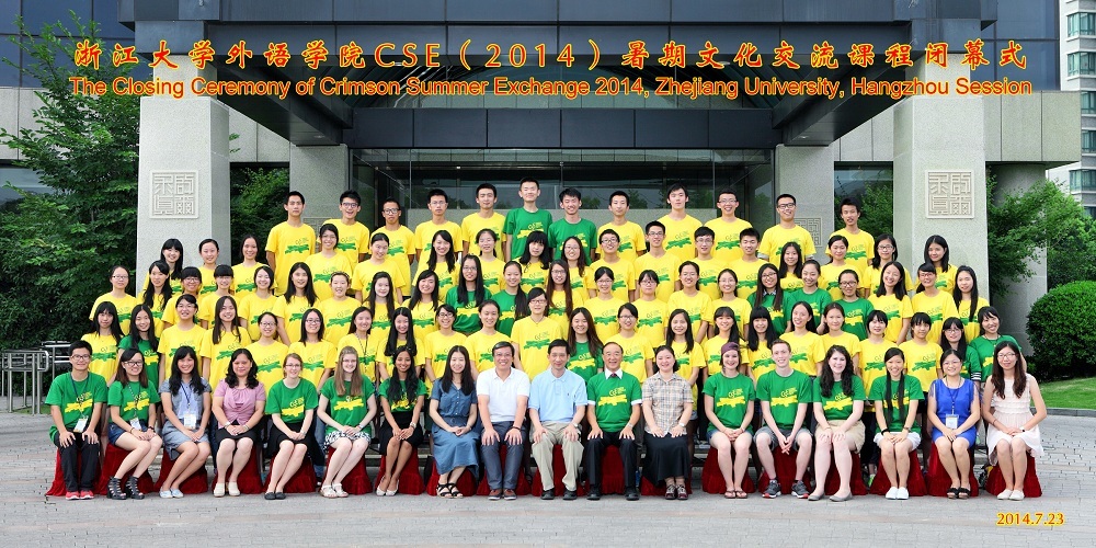 浙江大学外语学院CSE2014暑期文化交流课程虽然只持续了不到半个月的时间,但外国学生与浙大学子之间已建立了深厚的友谊,并将不断交流、迸发出新的火花。在本次CSE暑期文化交流课程中,通过全球通识课程学习、跨文化名师讲堂、素质拓展,以及丰富多彩的文娱活动等,浙江大学外语学院已成功为同学们提供了一种建立在专业基础知识之上的实践技能,包括不同背景之下的语言交流技巧,对多元文化沟通的体验,以及提升自我认知与价值认同,从而激发想象与多维思考,并提升同学们的领导力和组织能力。通过本次CSE项目,同学们拥有了一个放眼世界的平台,打开了一扇通往更大的发挥想象和创造梦想舞台的窗口,敢于打破常规,善于思考,勇于实践,拥有了能够参与世界竞争的良好素质与优秀素养。衷心祝愿所有同学能在未来人生中继续思考,继续开拓,并为浙江大学的国际化及中华民族的文化传播奉献自己的一份力量。