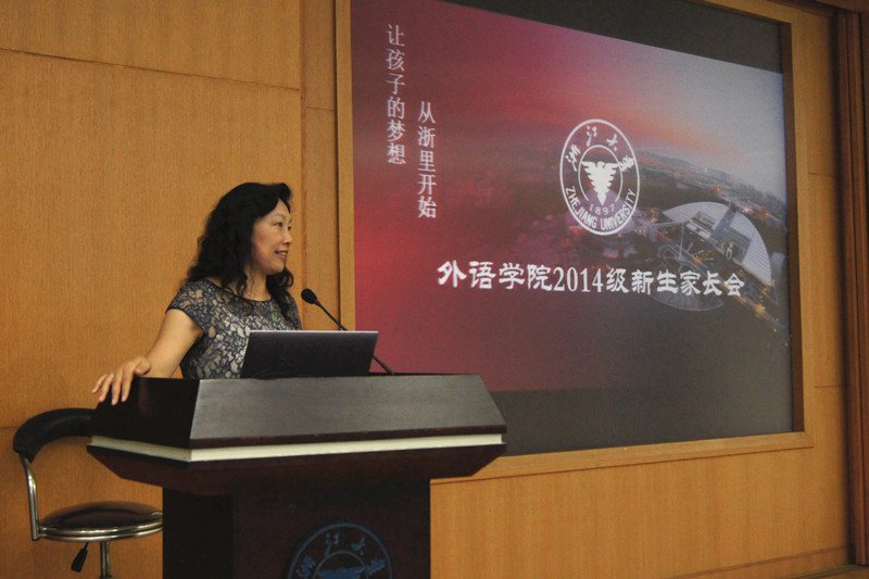 2014年9月1日上午10:00,外语学院2014级新生家长会在紫金港校区国会139召开,与会的领导有外语学院院长何莲珍、副院长李媛、党委副书记沈燎、教学科科长祝秀香、团委书记沈晓华等,会议由沈燎老师主持。