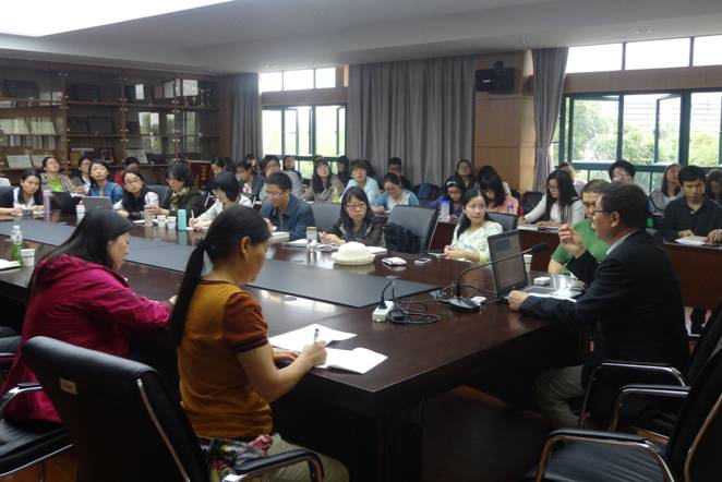 2014年10月17日下午3时,加州州立大学洛杉矶分校终身职教授、本校杰出教授(University Outstanding Professor)刘军先生在紫金港校区东五201为我院广大师生带来了一场精彩绝伦的西方文论学术盛宴。这场题为“互文性理论”的讲座围绕这一后现代关键词,追根溯源,层层梳理,将其发展历程、文学意义、表现方式以及克里斯蒂娃的“互文性”主张等一一呈现。高奋教授主持了本次学术讲座。