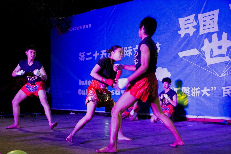 下午五时,“汇聚浙大”民族风情展文艺表演热闹开场,各个国家和地区的学生为大家表演了精彩纷呈的节目。韩国留学生献上一曲《Ddang Ddang Ddang》引燃全场气氛;来自越南、缅甸、马来西亚和印度尼西亚的留学生们则身着各自民族盛装,奏响民族乐器,带来一段段优美动人的东南亚风情歌舞;日本留学生身着制服短裙,载歌载舞,活力四射;泰国留学生带来了泰拳和泰舞,展示了泰国刚柔并济的魅力;来自新疆和西藏民族班的同学也依次登场,跳起了民族风情浓郁的《维吾尔舞蹈》和《踢踏舞魂》,展现了丰富多元的中华文化的魅力。之后,身着艳丽民族服饰的各国学生依次登场,送上最为体现文化特色的《民族风情走秀》,将晚会气氛推向高潮。最后,在一段活泼轻松的卢旺达歌舞中,本次“汇聚浙大”民族风情展正式落下了帷幕。