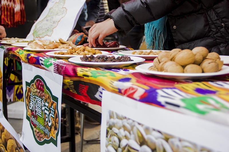 下午三时,民族风情展正式开始,各个展台都展示出了特色活动。大中国展台包含了新疆、西藏民族风情展以及中国传统的猜字谜活动,吸引了众多跃跃欲试的观众;非洲展台前,留学生们跳起了热情洋溢的舞蹈,引来不少观众驻足观看;泰国留学生向在场观众介绍泰国风景并教授常用泰语;阿富汗展台则有留学生书写阿富汗文,让观众们感受文化的奥妙与乐趣。各民族美食依然是活动的重头戏,不论是韩国展台的米酒和泡菜饼,还是越南展台的春卷和热咖啡,都让品尝的观众们赞不绝口。
