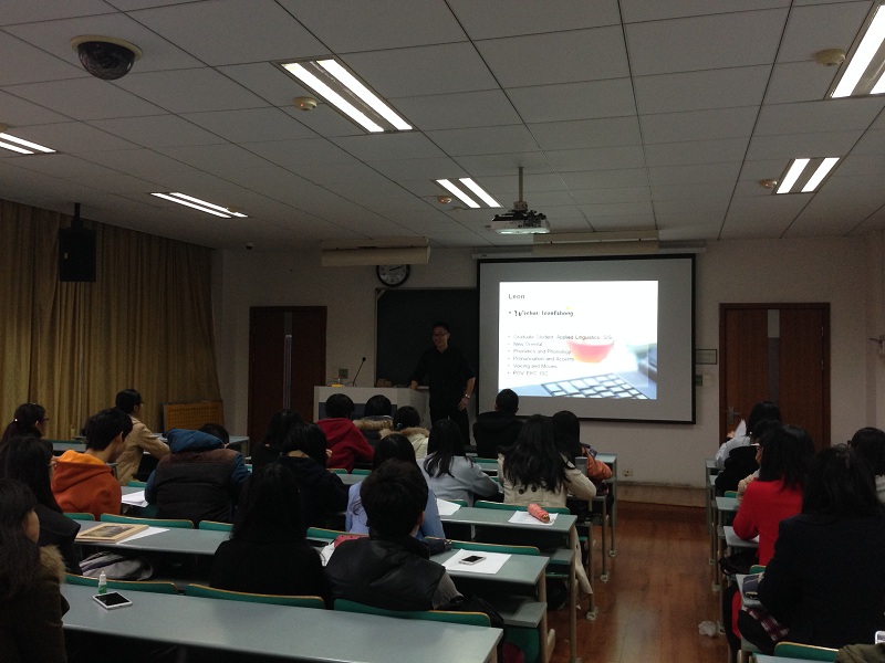 本期英语功夫训练营广泛宣传,建立学员库,每次课程都积极动员新学员加入,一共举办五次课,其中包括三次英语课堂和两次文化交流课,共计60名学员参加。课程采用课堂讲授与课外交流活动相结合的模式开展。张礼友老师从英语语音教学入手,使同学们掌握了发音技巧;英国的William老师从英语国家文化角度讲解了中西方文化的差异,为同学们展示了西方独特的文化,在和同学们分享各种有趣经历的同时,也开阔了学员们的眼界,体会到了中英价值观的差异,使大家进一步了解西方世界;新加坡老师Lin为学员们带来的是口语训练presentation和出国交流的经验。她讲授方式新颖,注重与学员的互动交流,充分地带动了学员的积极性,在口语训练的同时又加入了中新文化异同的介绍,并在此基础上结合自己在多个国家的经历向学员们分享了出国交流时的沟通技巧和生活经验。此外,她还向大家介绍了异地的美食,十分有趣。通过这次课不仅提高了大家的英语能力,还开阔了视野,获得了出国交流的宝贵经验。