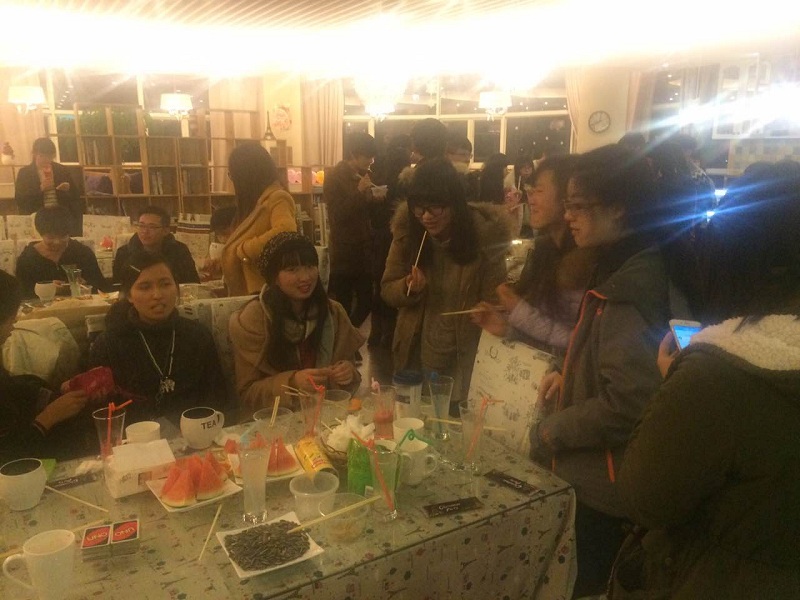 本期英语功夫训练营最有特色的还是汉语角活动和圣诞party。汉语角活动引导学员们围绕主题“谈一谈自己国家的酒文化”开展交流,并发布了“Task Card”,打破留学生与中国学生之间的疏远沉默,激励每一个人开口交流。随着活动的深入开展,EKC的学员们和留学生的交流开始变地从容,学员们通过这次交流活动锻炼了口语能力,并构建了一个与留学生互动交流的桥梁,打破文化壁垒,让留学生结交了更多的中国朋友,让学员们也可以领略不同文化的精彩。同时,课程组利用圣诞节的契机,在爱享吧举行了圣诞party。在派对温暖祥和的环境中,学员们在享受美食的同时,也和留学生们有了广泛的交流。为了使参与者有更多地沟通交流,party组织进行了洋葱圈接力、你划我猜等游戏。在游戏中,中国学生和留学生随机组队,不仅收获了游戏的快乐,还打破了陌生和沉默,建立了友谊。在两次交流活动中,学员们获得了很多与留学生沟通交流的机会,也在游戏和美食中收获了快乐。