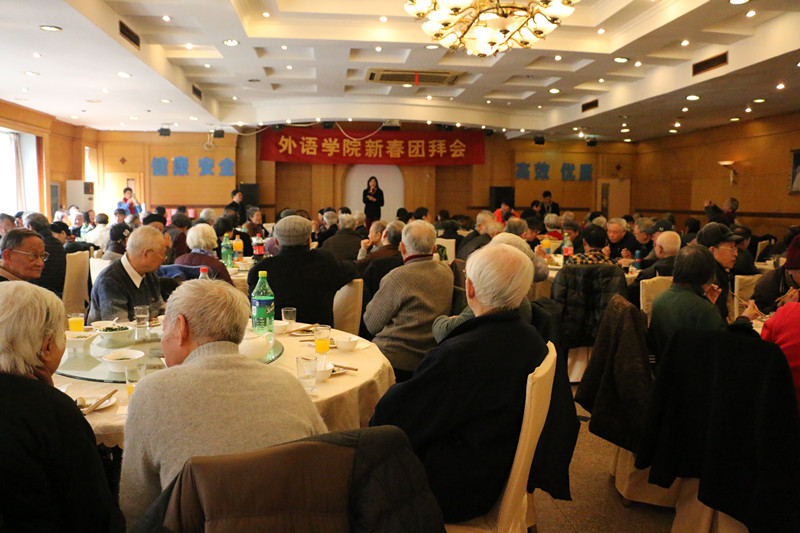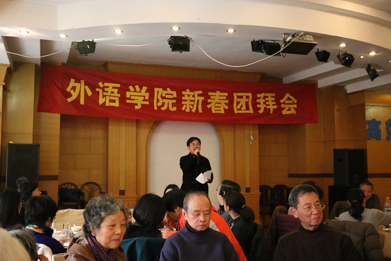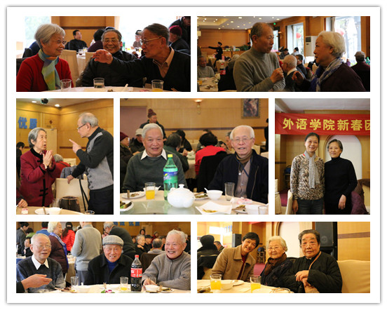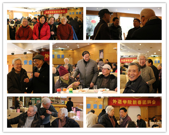 随后,团拜会在与会老师们的举杯庆祝声中正式开始。长久不见的老友、老同事相见格外激动,或热情相拥,或握手相谈,或合影留念,大家互道珍重,其乐融融。相信在老一辈教育工作者的关心和支持下,在新的一年里外语学院的发展会更上一层楼。