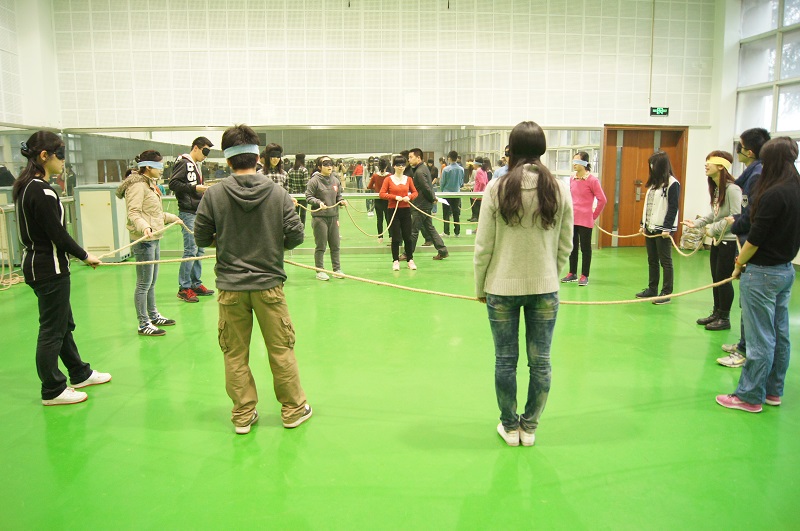 2015年3月15日上午9时,浙江大学情绪智能(EQ)提升培训班在风雨操场健美操室举行“团队合作”课程。这是EQ提升培训班开班以来全体学员首次进行的团队课程,各位学员都表现出了极高的热情,积极地参与了各项活动。