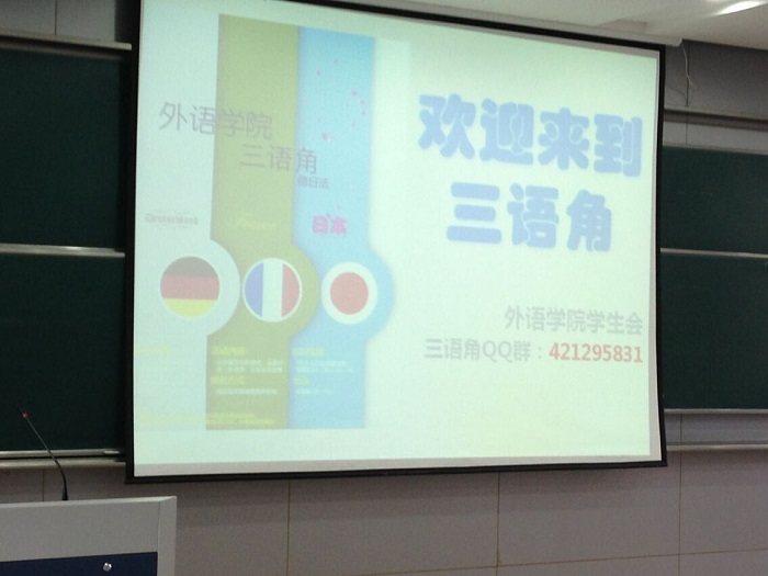 3月27日下午2点,外语学院学生会在西二205教室举办了第一次德日法三语角活动,来自各个专业的三十多位同学参加了此次活动。前来参加三语角的同学中有小语种专业的同学,也有辅修小语种和二外的同学。除了外语学院的学生之外,还有近十位来自社科、工科的语言爱好者也积极地参与到了活动中去。本项活动为学习德、日、法三语种以及对其感兴趣的同学们提供了一个沟通和交流的平台。