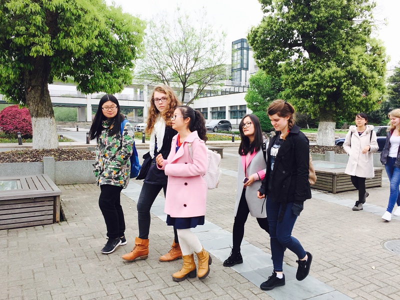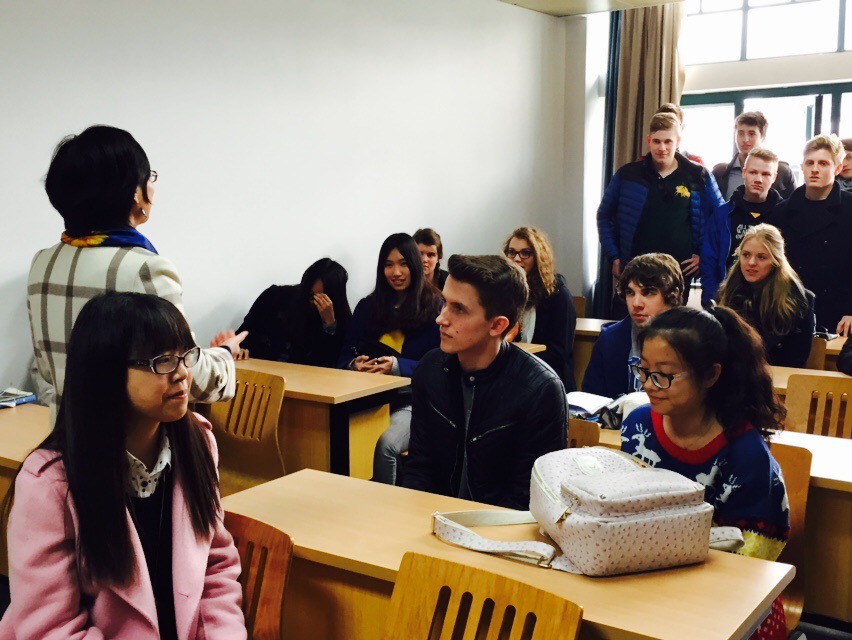 外语学院副院长李媛老师亲自迎接了这批德国师生代表团,并将他们带到德语专业特色课程《经济德语II》班上,在课堂上,李媛老师首先向德国师生代表团表示热烈欢迎并介绍了浙大德语专业颇具特色的培养目标和课程设置,她详细回顾了浙大德语专业近年来所实施的针对德语专业的教学改革项目和取得的显著效果,同时向大家介绍了浙大的特色项目—中国学硕士专业并热忱欢迎感兴趣的德国学生在大学毕业后报名参与该项目的学习。随后德国学生与班上20余名13级德语专业学生就双方共同关注的中德经济贸易、文化交流和教育合作等领域进行了广泛和深入的座谈与交流。德语专业学生把《经济德语II》课堂上学到的有关德国经济概况、中德经贸关系以及跨文化经济交流等知识灵活自如地运用到语言交流实践中,其扎实的语言基本功和出色的听说能力得到了德国师生代表团的一致好评。