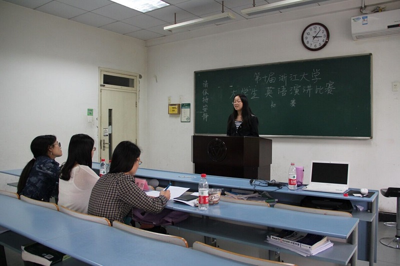 2015年5月9日,浙江大学第十七届科技文化节之浙江大学第十届大学生英语演讲比赛初赛在浙江大学紫金港校区顺利举行。本次演讲比赛由浙江大学本科生院教研处主办,共青团浙江大学委员会、浙江大学外国语言文化与国际交流学院和浙江大学外语竞赛实践基地承办。