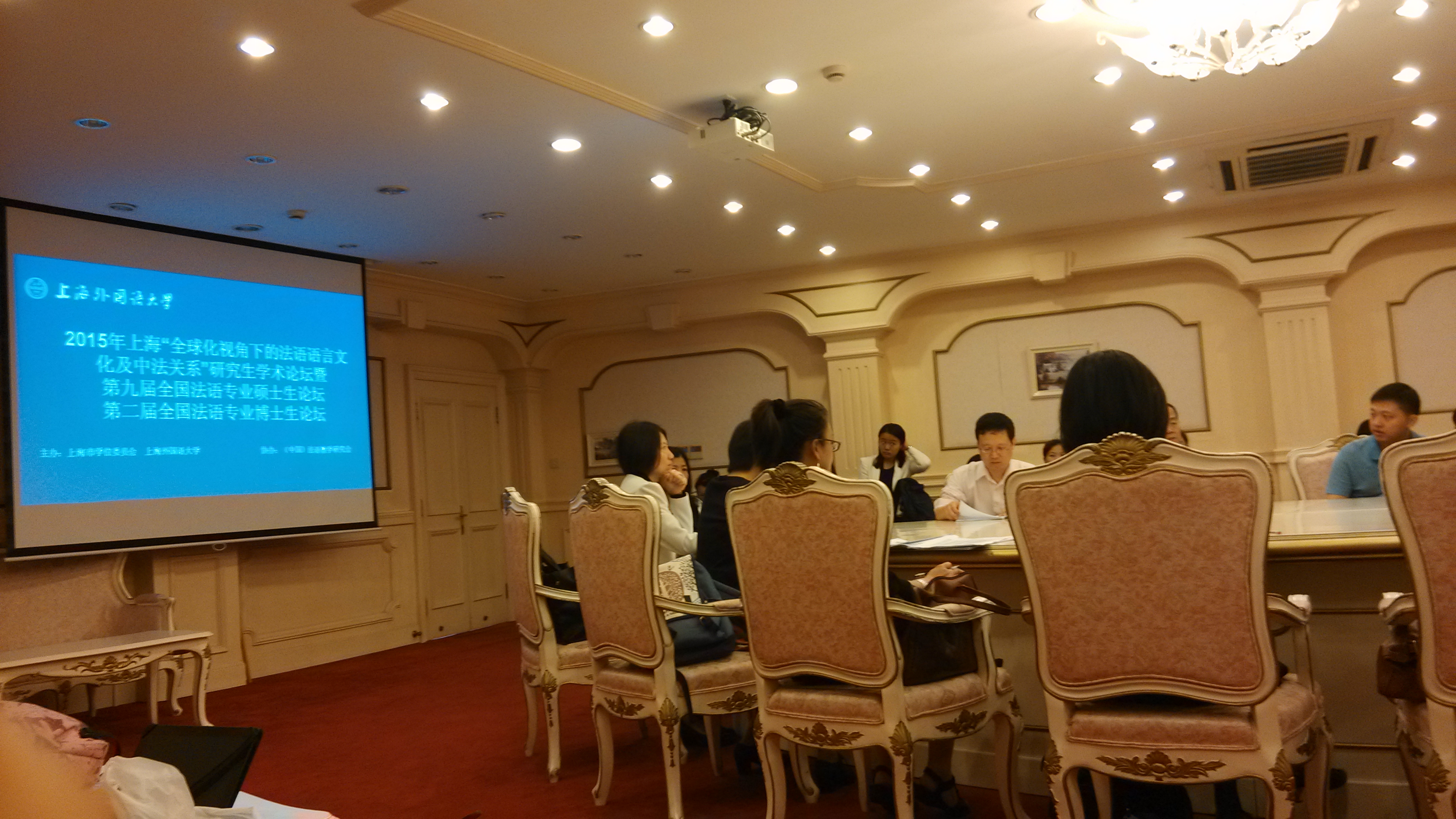 5月15至5月17日,第二届全国法语研究生教学研讨会,2015年上海“全球化视角下的法语语言文化及中法关系”研究生学术论坛暨第九届全国法语专业硕士生论坛在上海外国语大学举行,来自浙江大学、复旦大学、北京外国语大学、外交学院、厦门大学、中山大学、西安外国语大学、广东外语外贸大学等十余所高校及学术科研机构的数十名专家学者及研究生和博士生参加了会议。全国法语研究生教学研讨会是由全国数十所大学的法语系资深教授参与的对法语专业研究生教育问题的研讨会,我校法语所的孟筱敏教授和赵佳副教授应邀出席了本次研讨会。与会期间,孟筱敏教授向大会介绍了我校法语研究生教育的各方面情况,并就法语研究生培养等相关问题与来自北京、上海、西安等各地高校的其他教授作了深入的交流和探讨。