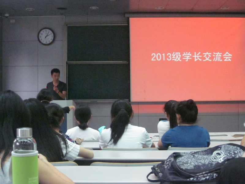 6月7日下午,由2013级本科生团总支和本科生第三党支部共同组织,浙江大学外语学院全体大二学生共同参与的优秀学长交流会在西二-104顺利举行。会上,外院四位优秀的学长学姐就本科毕业发展规划的经验,与同学们进行了分享。