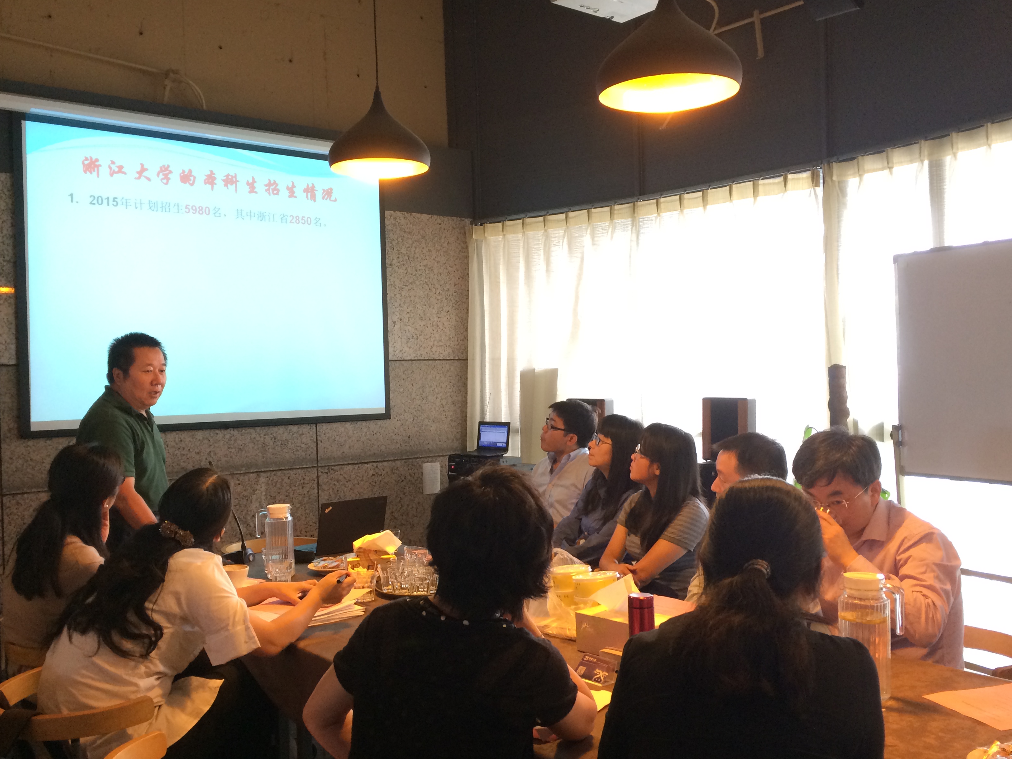 2015年6月9日中午12点,外语学院2015年本科招生工作专题研讨会在紫金港校区行政楼二楼的紫牛咖啡厅顺利召开。本次研讨会特别邀请到了浙江大学招生处吴敏处长和纪委叶晓萍副书记,师,学院副院长李媛老师,本科招生组团队全体成员、学院各专业教师代表、招生组组长代表王慧老师、黄任群老师。参加本次研讨会的还有外语学院党委书记褚超孚老本科生科及团委负责人等。会议由学院党委副书记沈燎老师主持。