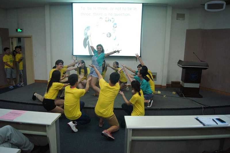 开营仪式由外语学院Co-Fellow李涤非主持,首先对到场的所有嘉宾和学生表示热烈欢迎。外语学院党委副书记沈燎老师回顾了CSE夏令营在浙江大学的办学历史和对提升浙大学生跨文化交际能力的作用,希望学员能够运用好这个宝贵的机会,认真参与,真正获得全面的提升。香港大学CSE项目学术主任高雪松教授也致辞,表达了对未来两周课程的殷切期待。随后,6个班级分别进行了各具特色的风采展示,还别出心裁地设计了自己的团队名称、标志和口号,唱歌、跳舞、京剧、悠悠球、T台秀等丰富多彩的表演,俨然一场视觉盛宴。来自国外的导师们通过昨天下午趣味横生的“破冰”活动和晚上的“K歌之夜”已经完全融入了集体,也在表演中展示了自己的迷人风采。最后,全体学生和老师在蒙民伟楼合影留念,开营仪式顺利结束。