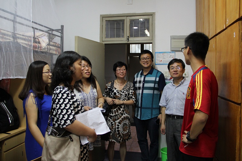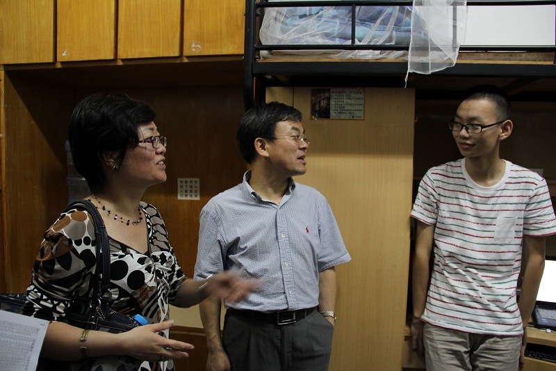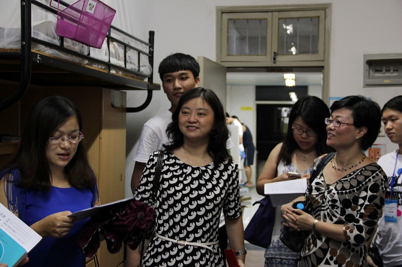 8月21日晚上19:30,学院党委书记褚超孚老师、副院长李媛老师、党委副书记沈燎老师、团委书记沈晓华老师和2015级辅导员杜吉平走访了各新生寝室。尽管寝室数量众多,领导们一个都没落下,为每一位同学带去了真挚的问候并与新生和家长进行了亲切的交谈,询问了同学们的基本生活情况和适应情况。在得知一名男同学感冒后,领导们不断叮嘱他注意身体,必要时务必就医,给予了他真诚的关心和问候。