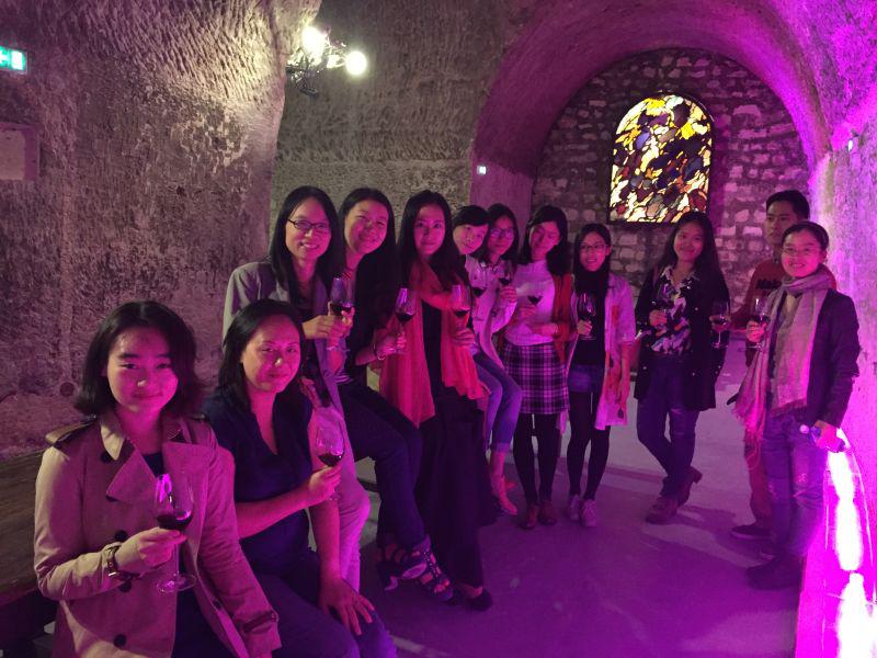 活动在丁汀校友工作的酒窖Chemin des vignes进行。校友们共同参观了这座具有悠久历史的酒窖,饶有兴趣地聆听了酒窖发展的历史,葡萄酒的种植,酿造,保存方面的知识。大家边品尝葡萄酒,边学习如何品鉴葡萄酒。酒窖主人Legrand先生还热情地向大家介绍了葡萄酒文化。他说,葡萄酒不仅是饮品,更凝聚了一个国家的文化,它是诗歌和艺术的结合。校友们仿佛又重新回到了大学时代的法语课堂中,一起徜徉于法国文化之旅。