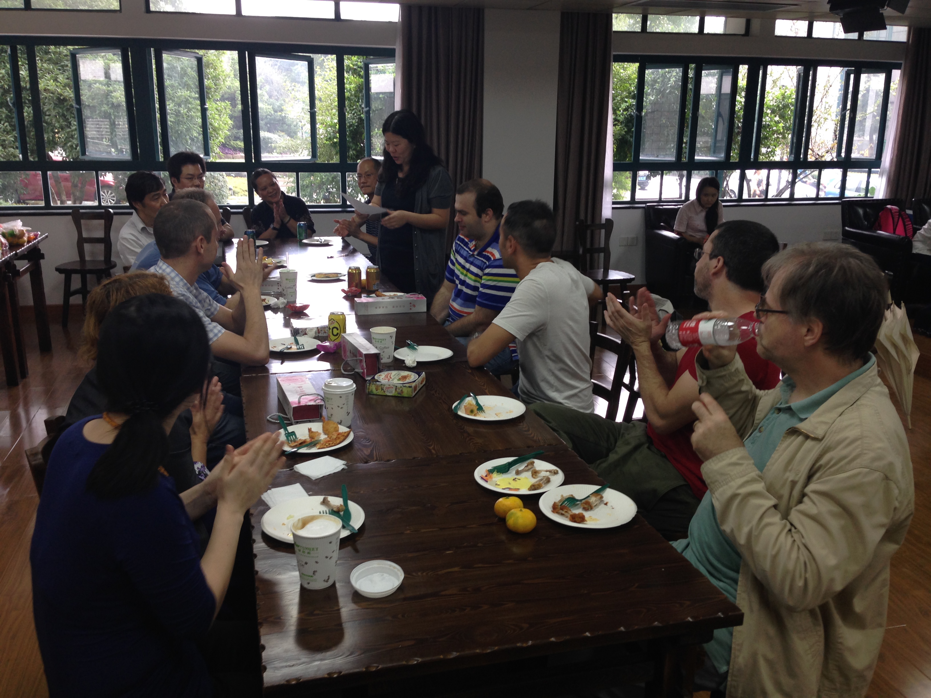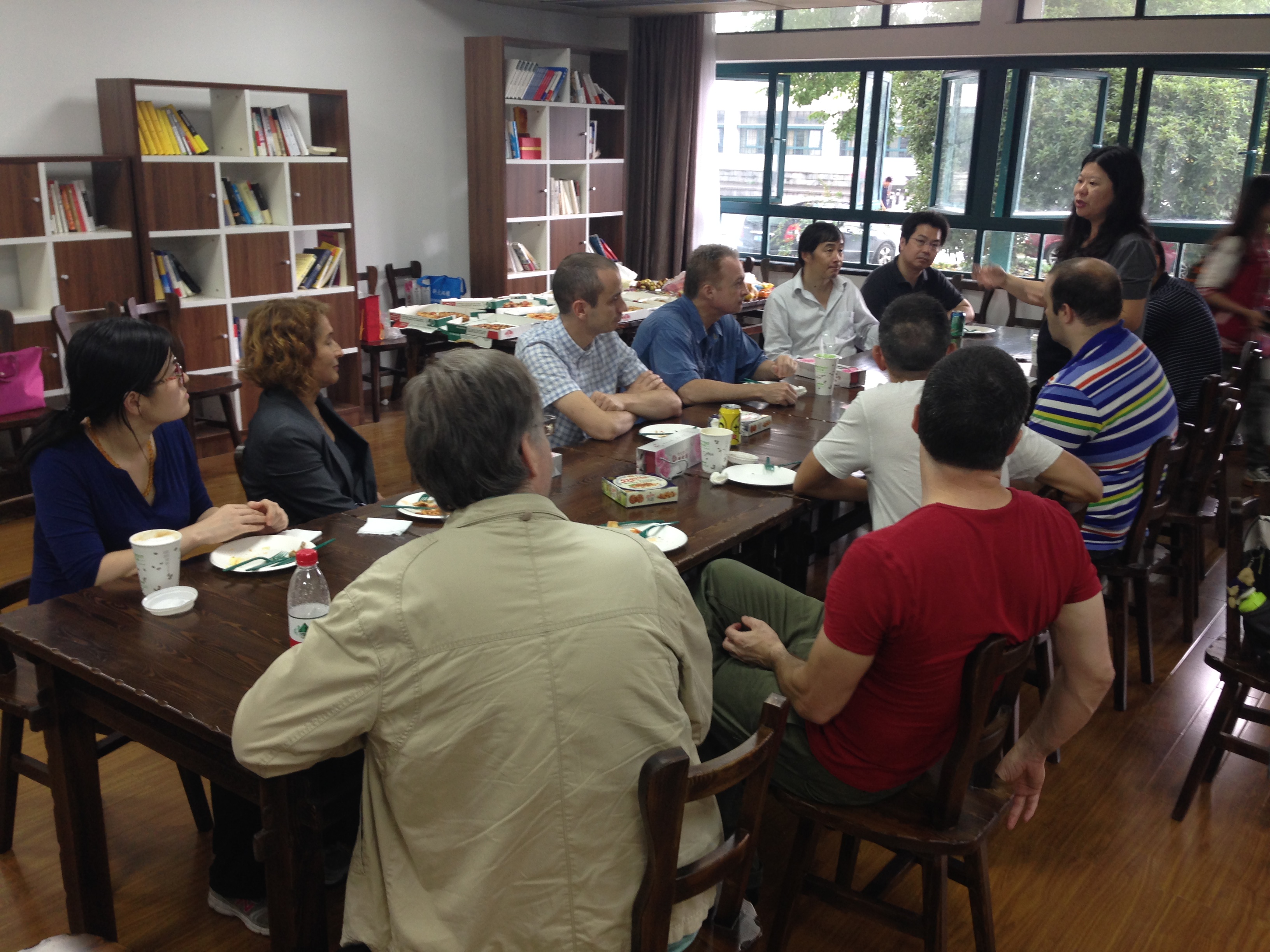 与会人员在餐会期间进行了亲切而充分的交谈,外籍教师不仅享用到家乡味道的披萨和咖啡,更品尝到了中国传统口味的月饼和饮品。新加入的外籍教师纷纷表达了对中国和杭州的喜爱,以及对即将在外语学院工作的期待。