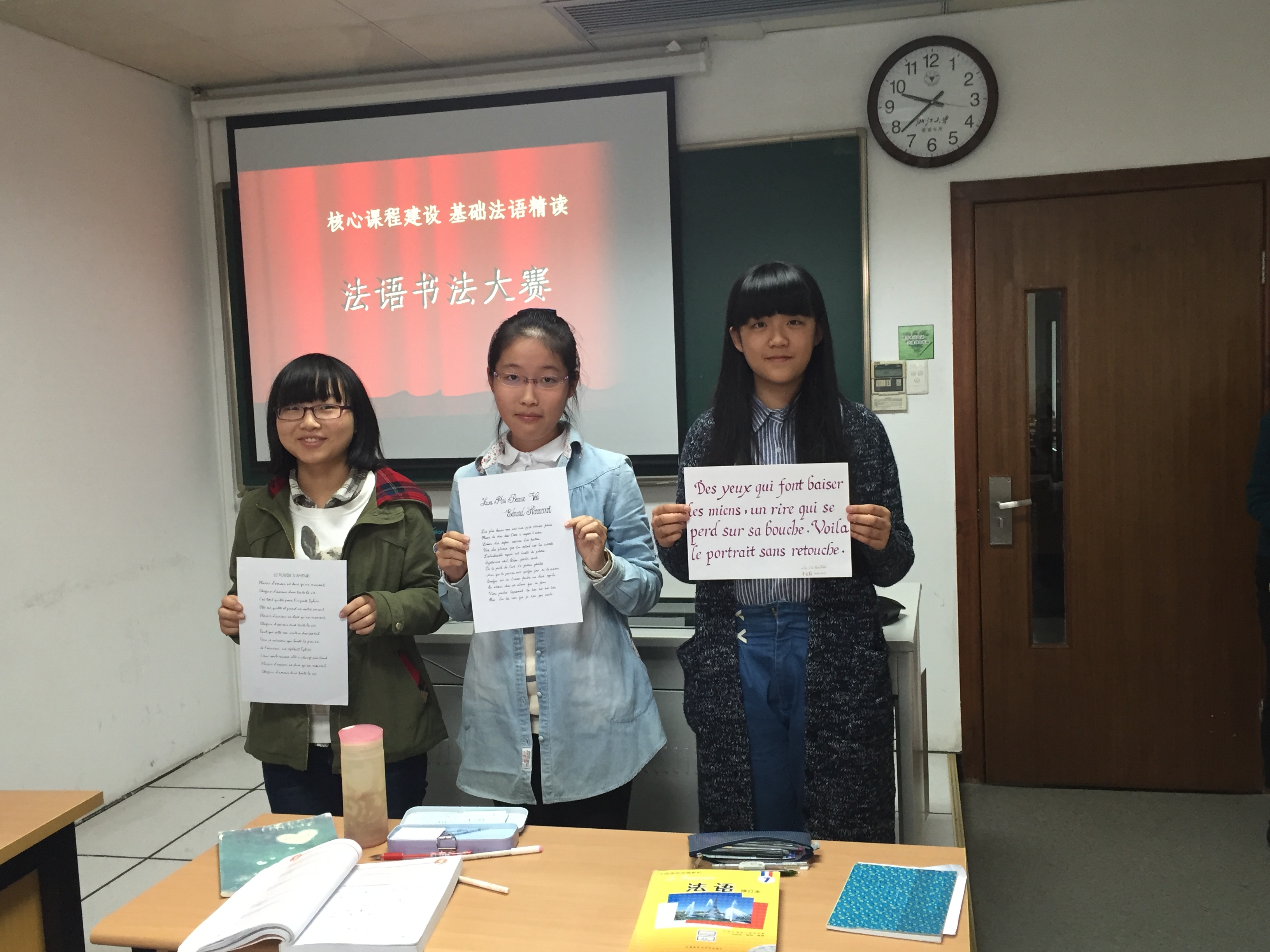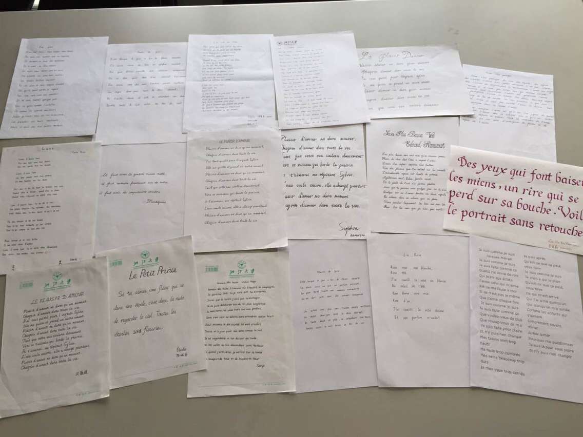 为了激发学生学习法语的兴趣,加深其对法国文化的了解,同时弘扬书法艺术,法语语言文化研究所2015级新生举办了法语书法比赛。