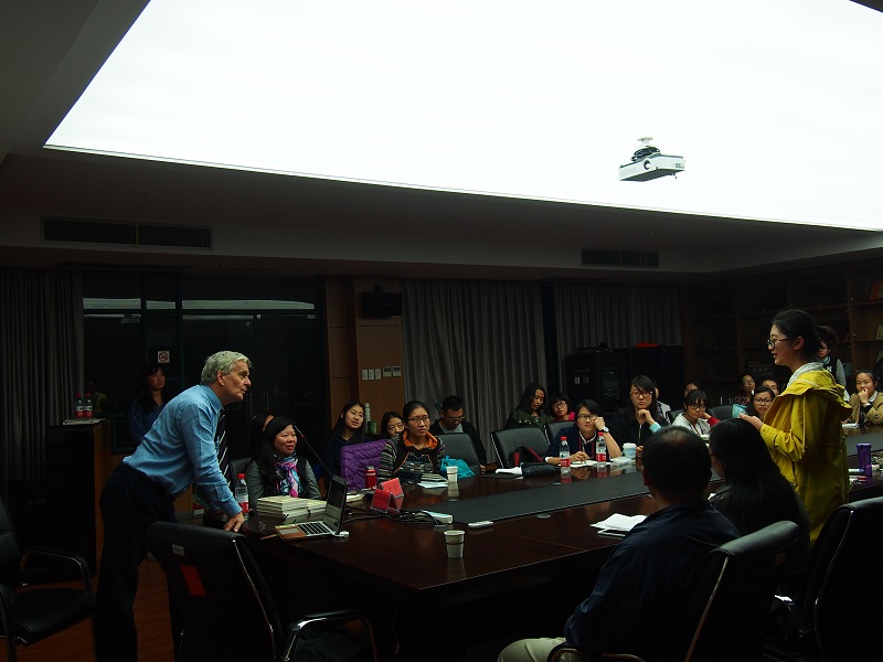 在随后的问答环节中,师生们就中国与英国的文化差异、英国的宗教情结、剑桥大学的相关情况等积极踊跃地提出了自己的疑惑,并与Nicholas Chrimes教授展开了对话与交流。