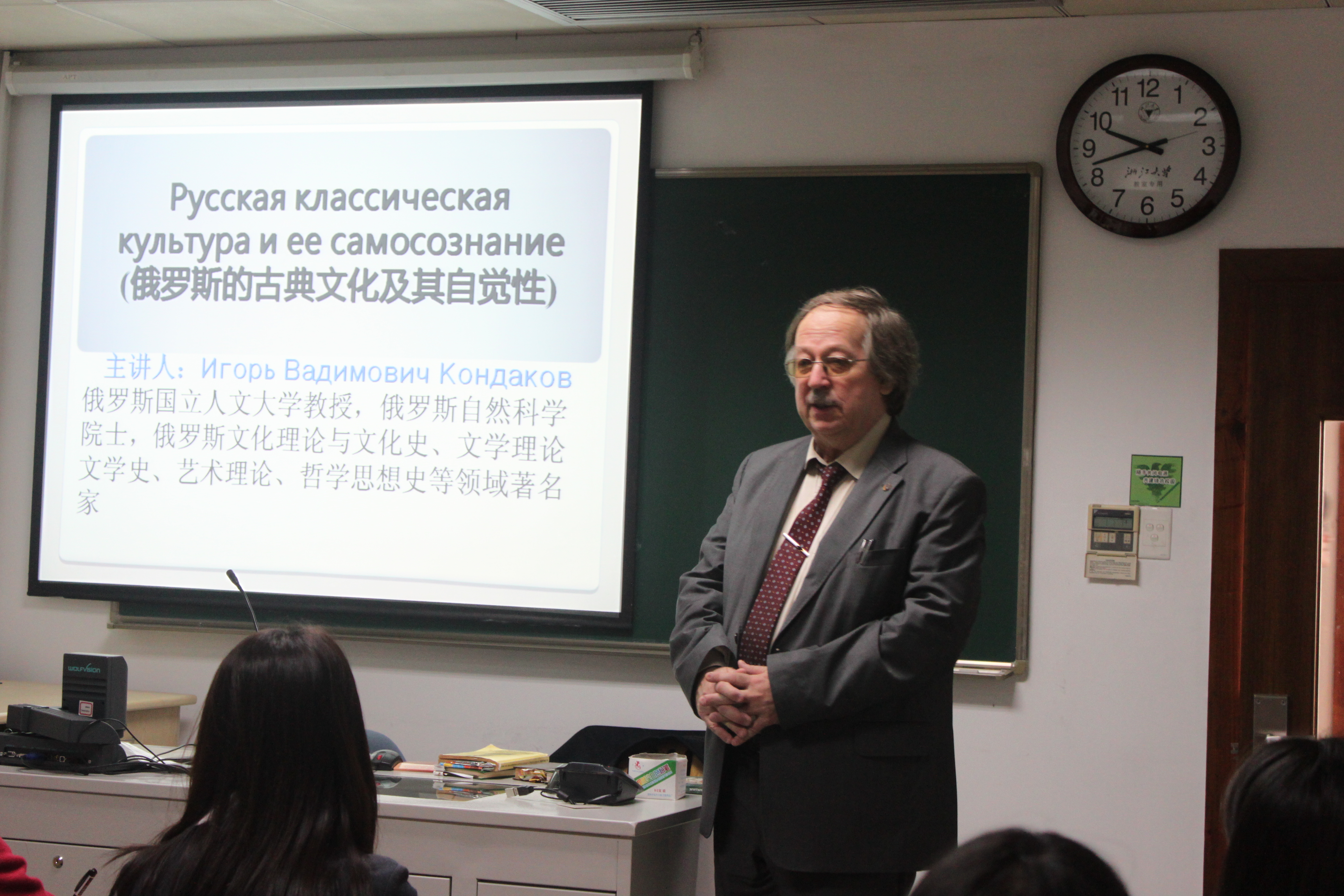 2015年11月2日,在东6-313,来自俄罗斯的自然科学院院士、俄罗斯国立人文大学教授伊戈尔·瓦基莫维奇·康达科夫的讲座顺利举行。