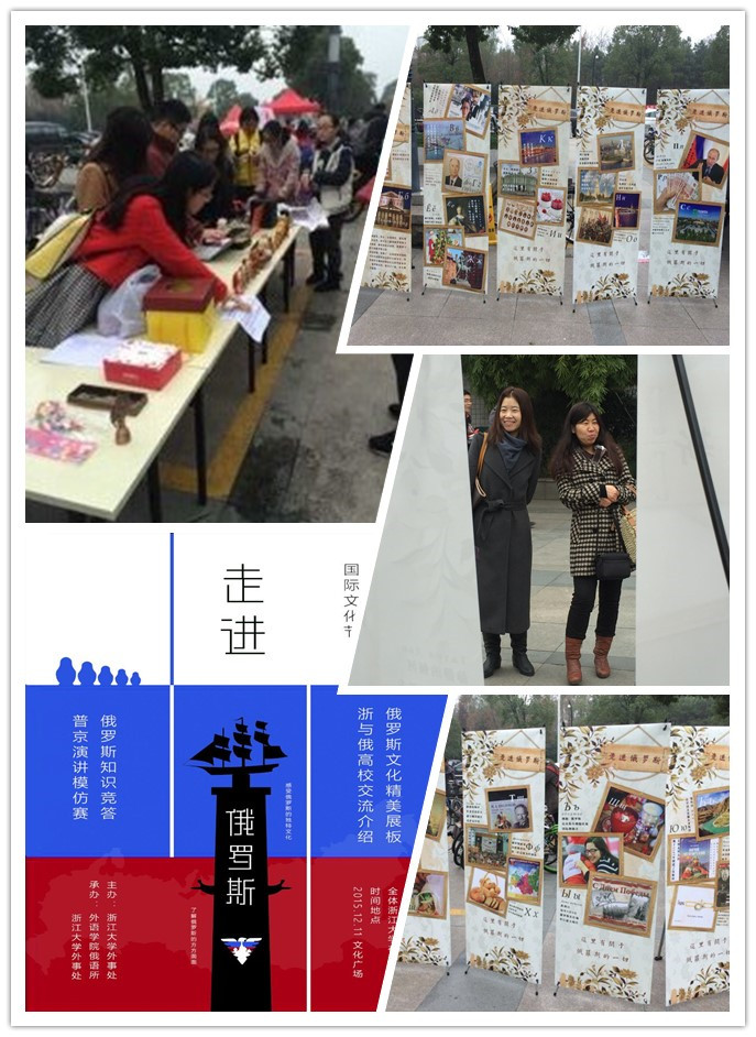活动现场热闹有序,9块字母展板呈一字排开,向同学们全方位展示了俄罗斯国情风貌。俄罗斯趣味知识问答环节,同学们踊跃抢答,赢得了精美的俄罗斯洋葱、风情角梳、套娃挂件等奖品,更对俄罗斯有了进一步的了解;俄语对话模仿环节,同学们更是热情高涨,争先模仿普京总统的俄语发音,虽然生涩但却也有模有样,在体验了一把硬汉风采俄语发音的同时也收获了精致的套娃奖品;三折页发放环节,同学们通过手中精心设计的三折页走进了俄语所,掌握了更多合作交换等信息,高涨的人气甚至吸引了一位奶奶和多位外国友人前来参与,使现场的气氛更为活跃。