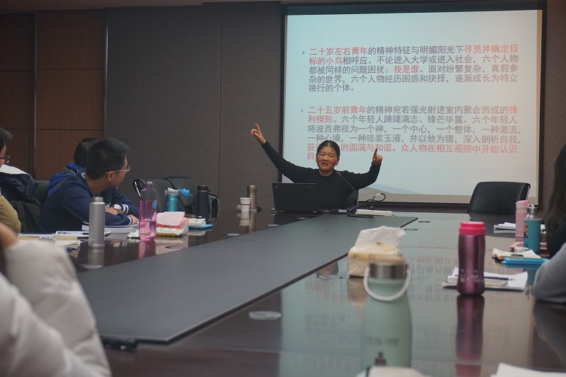 之后,高老师阐释了三个关键词:“随物赋形”、“神制形从”、“气韵生动”,并以此为参照分析了《海浪》的表现手法。她指出,“随物赋形”指称突破形的束缚,进入传神境界;其内在含义有两点:其一,创作需突破“常规”,才能表现“常理”,即艺术之本真;其二,创作既需要合于天造,也需要合于人意。“随物赋形”启示我们,要表现生命真实,必须超越外在形式而进入生命本质的神似。“随物赋形”正是伍尔夫在《海浪》中表现生命精神的关键技法。她打破常规地塑造了六个人物,着重表现个体生命体悟与大自然运行规律之间的呼应关系,将六个人物生命经历中的九个阶段与太阳从升起到落下的“圆球”运行轨迹相照应。高老师全面梳理和提炼了生命精神演变九个阶段的主要特征,以及各部分之间的关系,阐明了外在自然与内在精神的关联性。