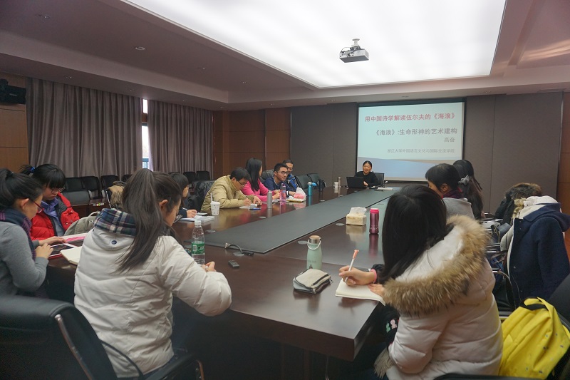 12月16日下午2点,浙江大学第二十六届国际文化节之高奋教授学术报告会在外语学院东五201(东)举行。高奋教授以“用中国诗学解读伍尔夫的《海浪》”为主题,为同学们献上了一场精彩的学术报告。