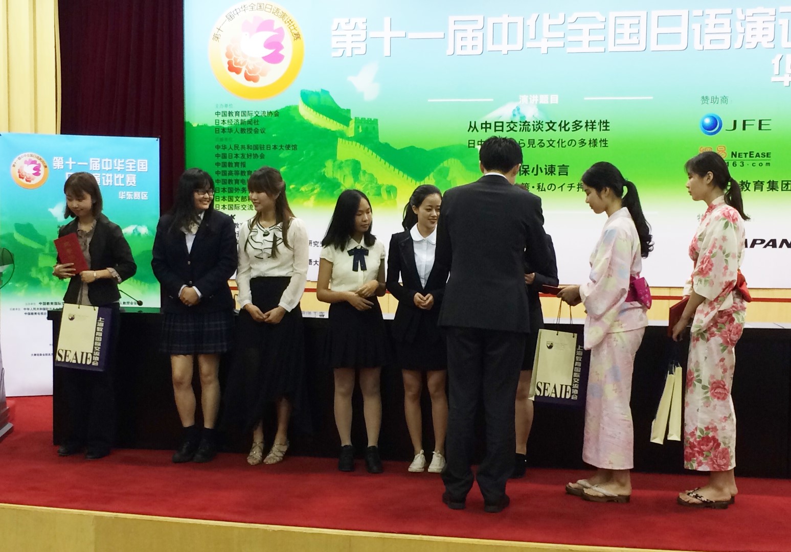 比赛结束后,评委对选手们的演讲进行了细致的点评和高度的赞扬。最后,评委们与选手一同合影留念。至此,第十一届中华全国日语演讲比赛(华东赛区)圆满落下帷幕。