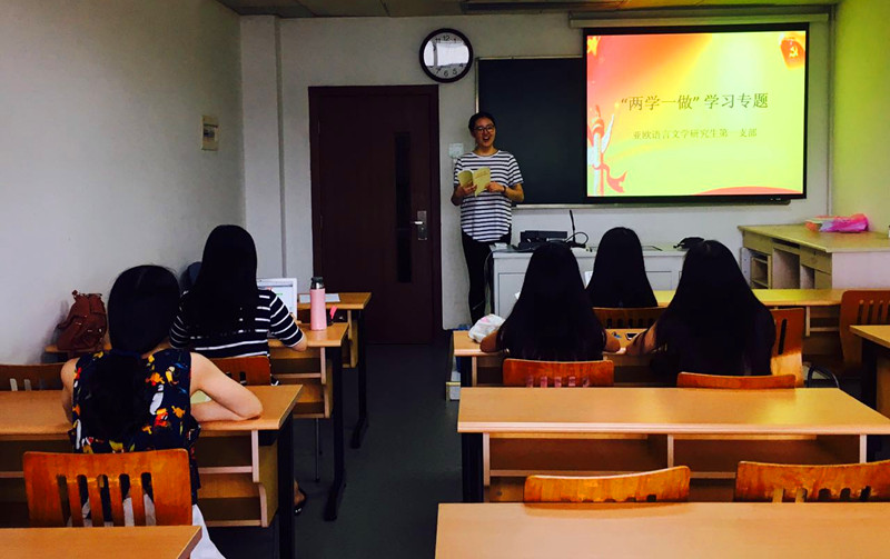 6月15日中午,亚欧语言文学研究生第一支部的五名党员在支部书记刘晓旭同志的带领下,在东6-318教室开展了主题为“两学一做”学习交流会议,讨论会中,各位党员同志积极分享阅读《习近平总书记系列重要讲话读本》之后的学习心得,结合自己的生活实际,就一系列问题进行了深刻详细的反思和阐述。