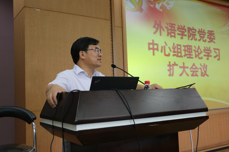 2016年9月30日下午13:00,外语学院于蒙民伟楼138会议室召开学院党委中心组理论学习扩大会议。会议由学院党委书记褚超孚主持,学院领导班子成员、全体党委委员、全体在职教工党员、全体学生党员等百余人参加了会议。