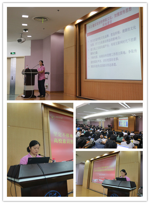 随后,沈燎就如何在学院层面巩固并落实马克思主义在意识形态领域的指导地位进行简要分享。她提出应在院级层面全方位多角度形成合力,坚推进意识形态工作;其次应建设良好的学院文化,加强宣传思想阵地建设;再次应该坚定不移地培育和弘扬社会主义核心价值观,切实将社会主义核心价值观内化于心、外化于行,助力青年教师、学生成长成才,在校园内要用社会主义核心价值观抵御宗教对高校进行渗透,防范校园传教活动。