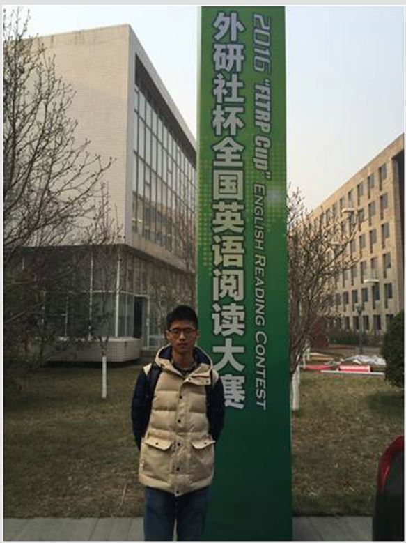 2016年12月11日,为期六天的2016年“外研社杯”全国大学生英语挑战赛在北京市圆满落幕。来自浙江大学竺可桢学院的展祥皓、顾茗倩和材料科学与工程学院的罗舶桑代表浙江省参赛,分别获得全国大学生英语写作大赛特等奖季军、全国大学生英语演讲大赛二等奖、全国大学生英语阅读大赛二等奖,为浙江省和浙江大学赢得了荣誉。