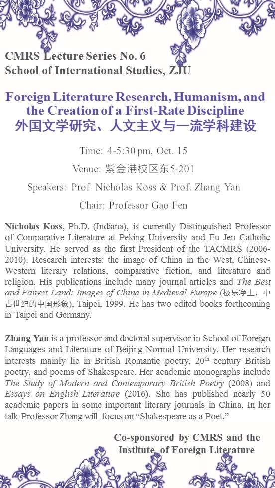 演讲题目:外国文学研究、人文主义与一流学科建设