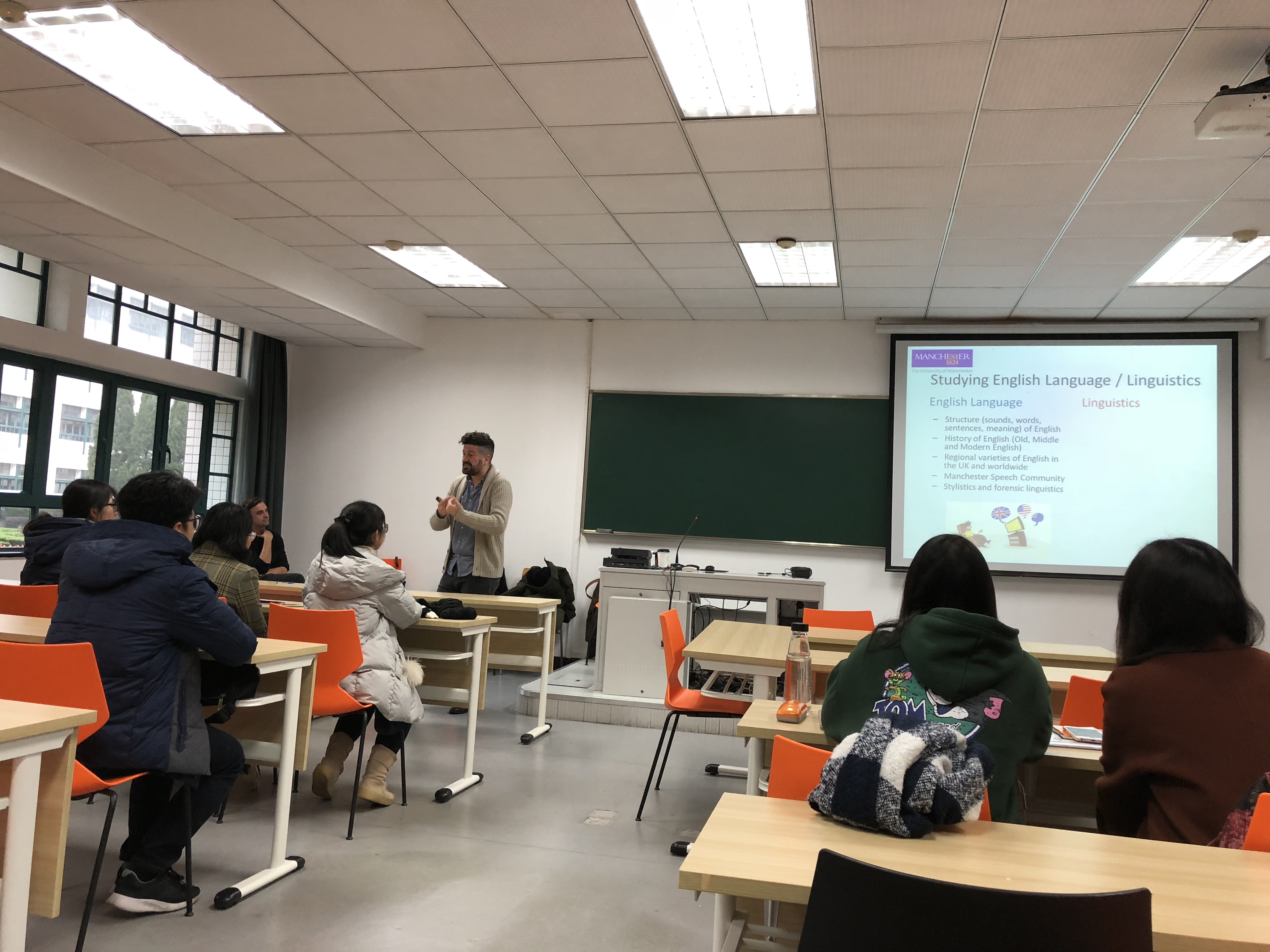 2017年12月18号下午,英国曼彻斯特大学艺术、语言与文化学院2+2项目宣讲会在外语学院顺利举行。主讲人为曼彻斯特大学艺术、语言与文化学院Dr. Ben Walker, Julio Villa Garcia,和Luke Stephen Uglow。宣讲会由项目负责人徐沁老师与国际交流办公室斯隽老师共同主持。