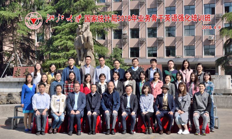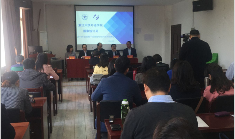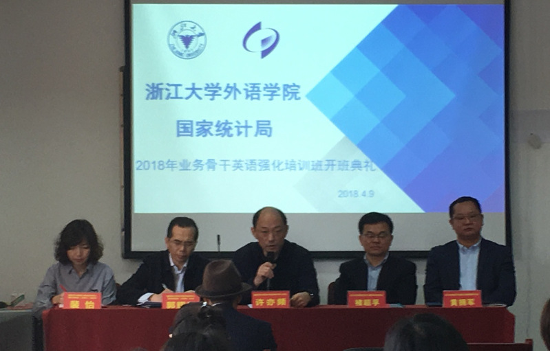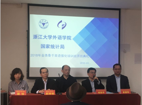 2018年4月9日,浙江大学外国语言文化与国际交流学院联合国家统计局教育培训中心举办的国家统计局第二期业务骨干英语强化培训班在华家池校区举行了开班典礼。